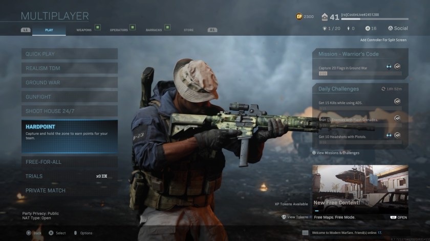 Jocul nu are nicio lună, dar a primit deja câteva updateuri ce au modificat de vreo două ori meniul de multiplayer. Dinamic, ofertant, realistic. Cam asta găsești în zona asta, trecând de la meciuri 2vs2 pe hărți de-o șchioapă, la meciuri în care 64 de inși împărțiți în 2 echipe se întâlesc pentru a domina o hartă imensă (+ vehicole și aerian).