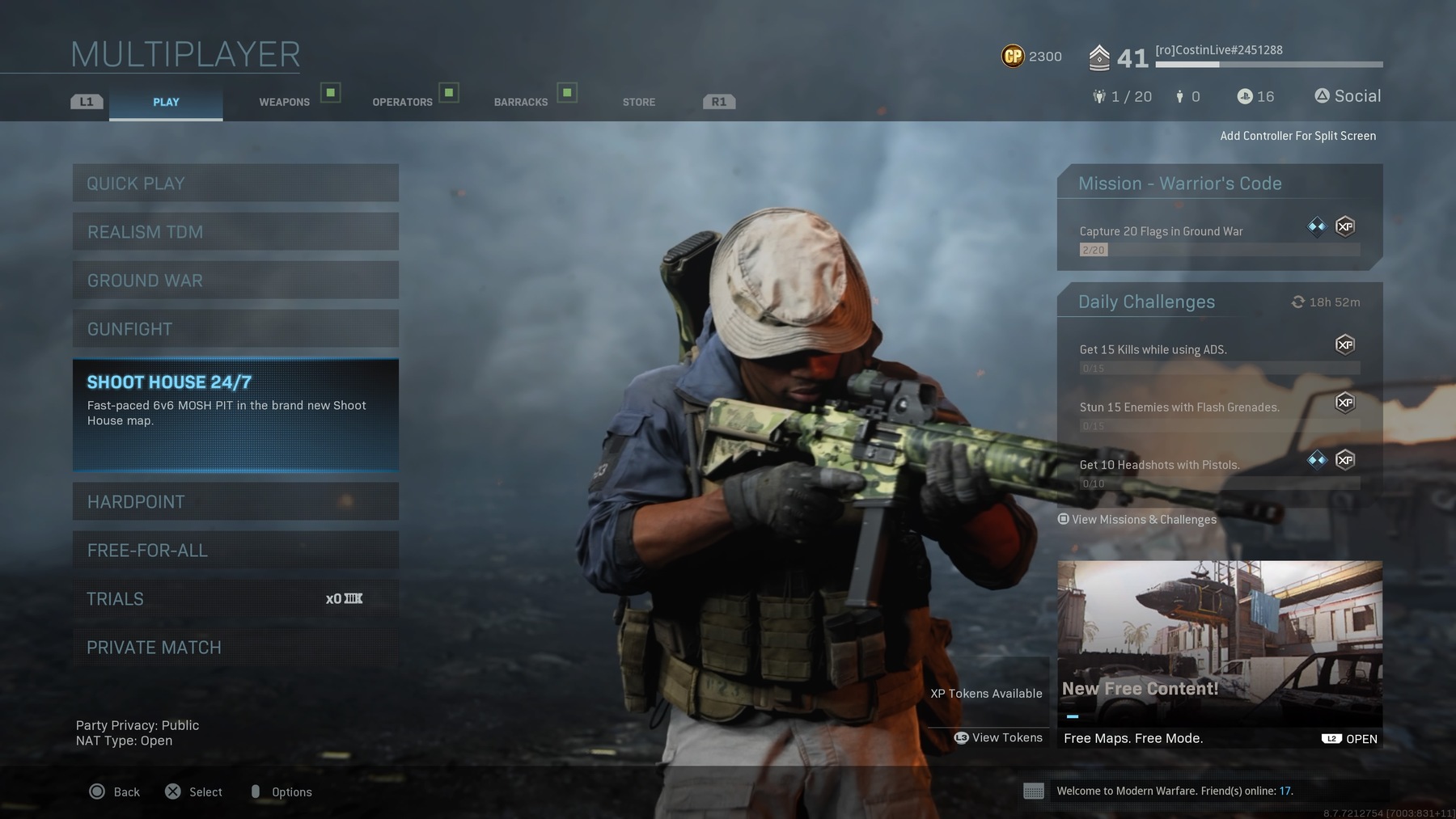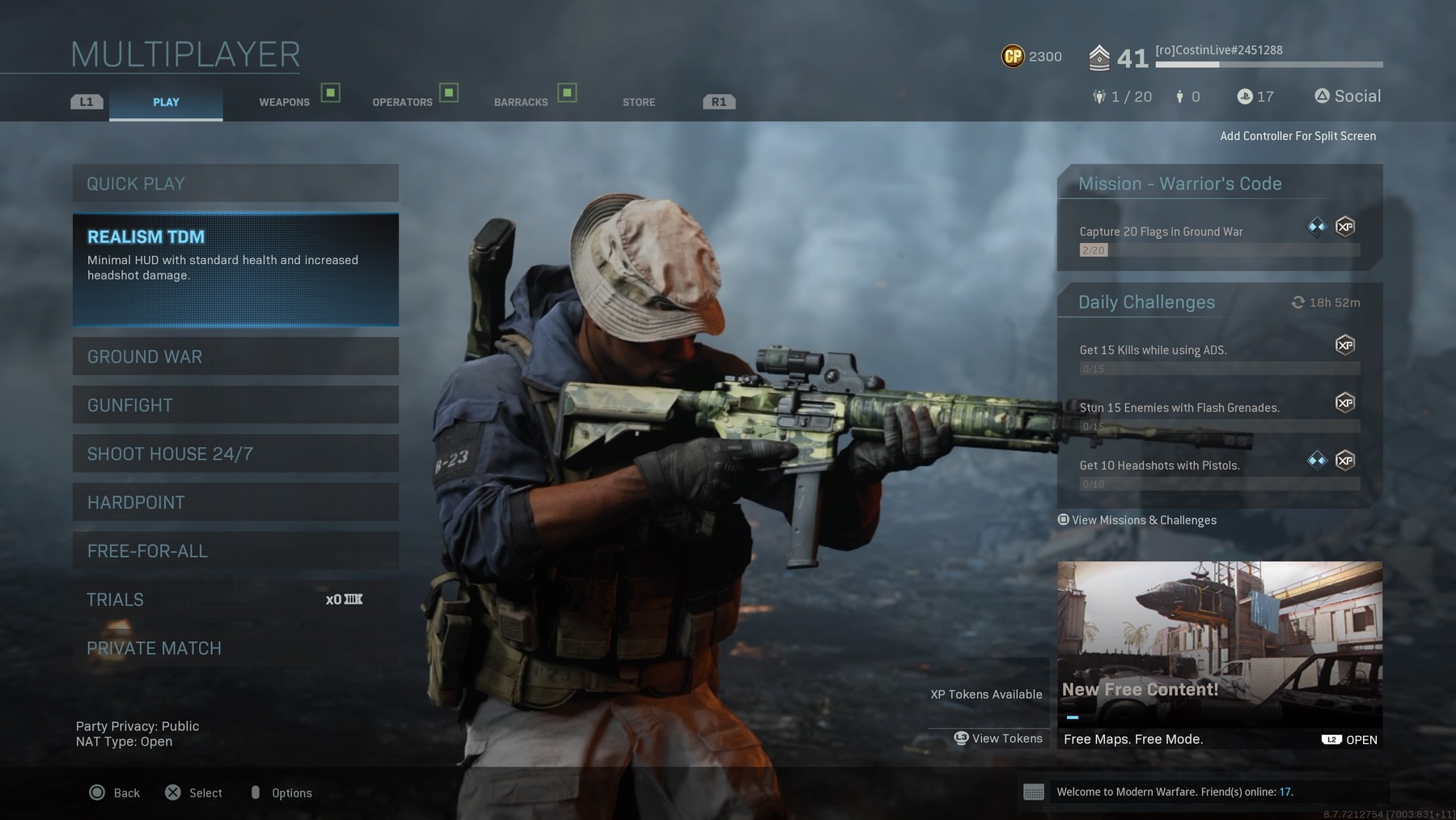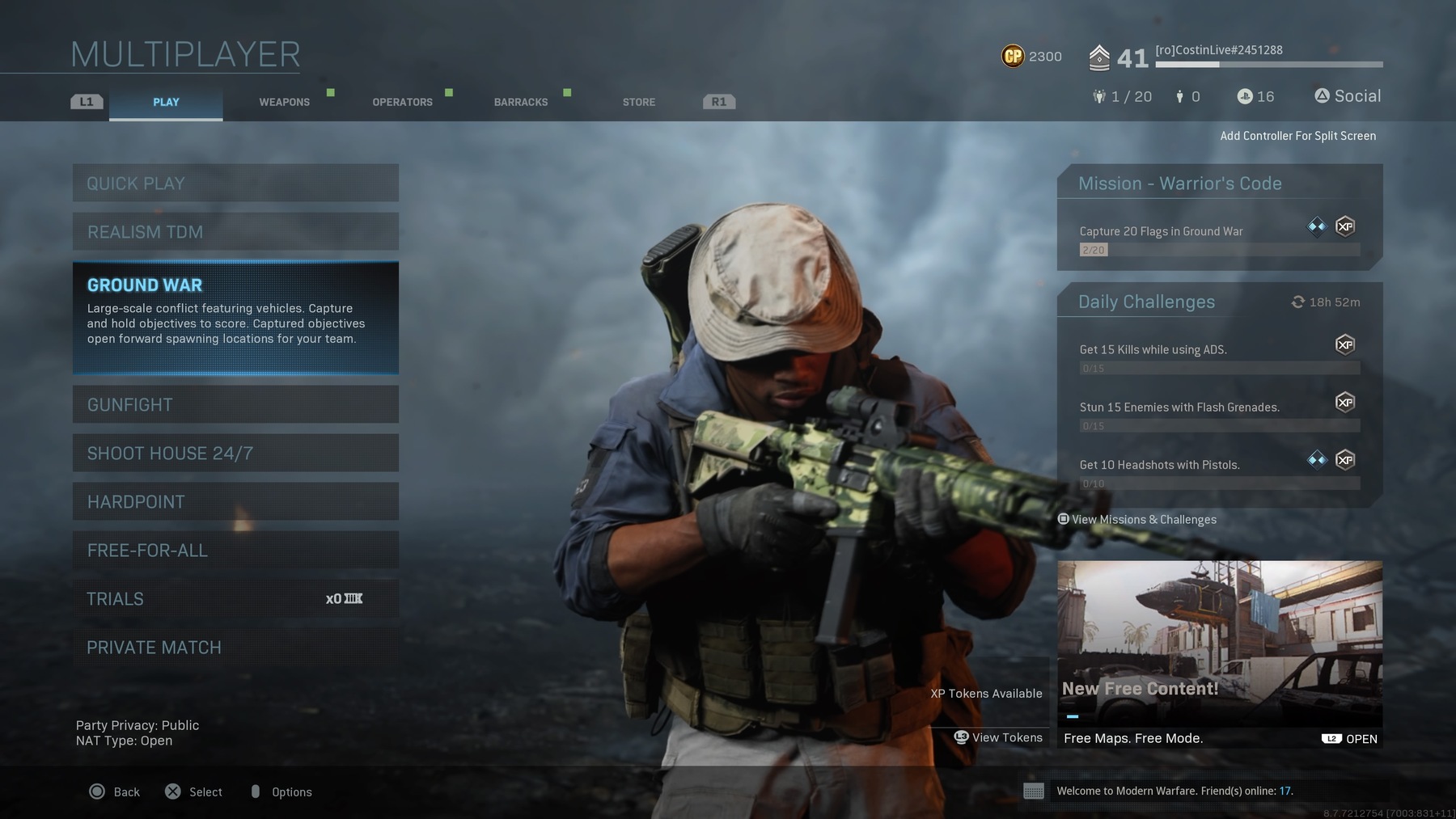 Jocul nu are nicio lună, dar a primit deja câteva updateuri ce au modificat de vreo două ori meniul de multiplayer. Dinamic, ofertant, realistic. Cam asta găsești în zona asta, trecând de la meciuri 2vs2 pe hărți de-o șchioapă, la meciuri în care 64 de inși împărțiți în 2 echipe se întâlesc pentru a domina o hartă imensă (+ vehicole și aerian).