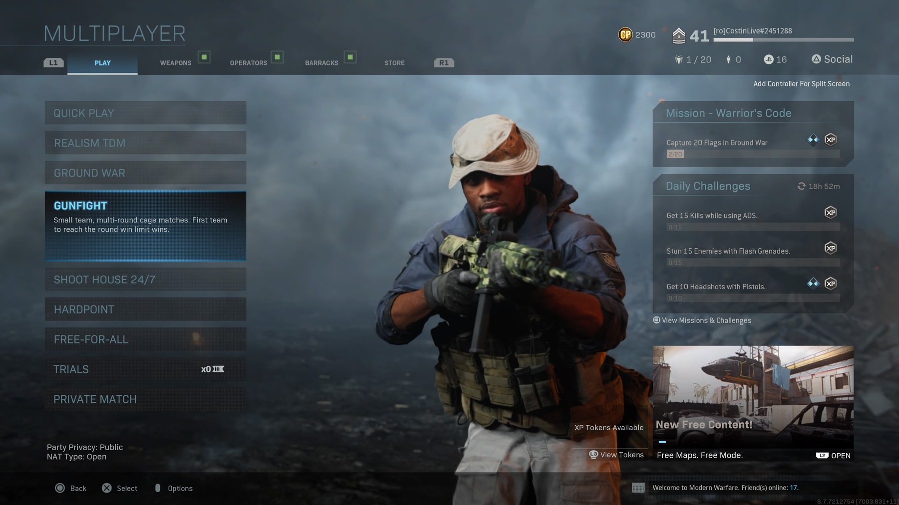 Mai ai și un meniu de operatori, însă nu cred că sunt foarte importanți în economia jocului, cel puțin la început, unde obiectivul pricipal este de a prinde mecanica jocului și a testa diferite arme până la un match bun. Eu l-am precomandat cu câteva ore înainte de lansate (am prieteni convingători, lol) și am primit un pack ce conținea un M4A1 modificat cu care joc și acum.