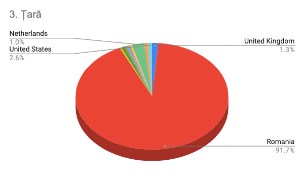 În afara țării locuiesc 8.3% din repondeții studiului, cei mai mulți români fiind relocați în Statele Unite (2.6%), UK (1.4%) și Țările de Jos (1%). Alte țări care au apărut în rezultate cu câte 1-2 înregistrări (sub 1%) sunt Austria, Germania, Italia, Spania, Danemarca și Moldova.