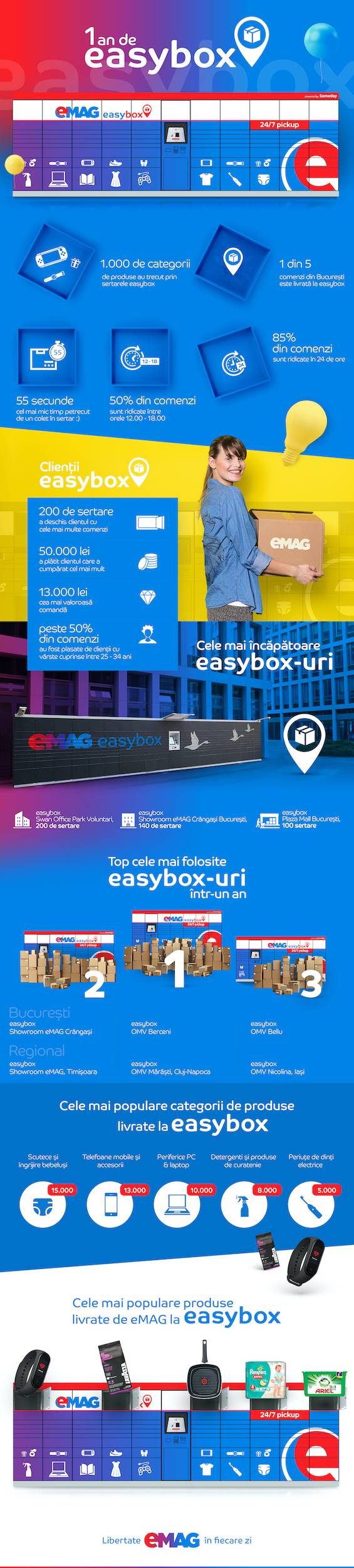 Pe plan internațional, în Ungaria, unde ținta este de vânzări de un miliard de euro în următorii patru ani, compania a deschis deja primele showroom-uri și a instalat 160 de unități easybox. În Bulgaria, eMAG a inaugurat primul showroom și se va concentra în continuare pe dezvoltarea și îmbunătățirea serviciilor sale către clienți.