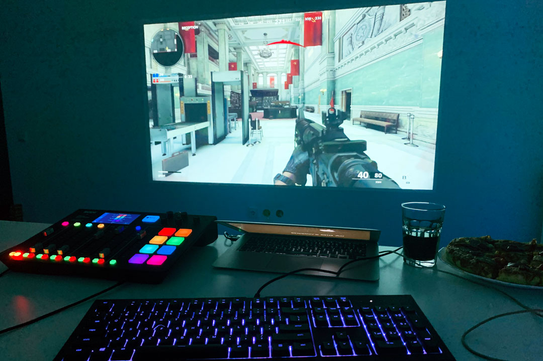 • În jocuri se comportă excelent, nu are latency-ul TV-ului, însă trebuie să te joci cu senzitivitatea. Eu am trecut de pe monitor pe proiector și a trebuit să mă joc puțin cu ADS (Aim Down Side sensitivity) pentru a putea ține piept tuturor copiilor agitați din Germania, Franța sau de pe ce alte servere am mai aterizat. 🙂