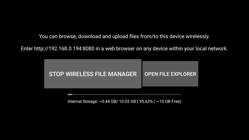 Vine cu câteva aplicații preinstalate, precum Netflix, Youtube, CBS News, TED, Redbull TV, însă poți instala tot felul de alte aplicații (Google Play). E cam chel, ca să mă exprim plastic, de exemplu eu a trebuit să-mi descarc Wireless File Manager, o aplicație pe care am folosit-o pentru a putea descărca din memoria internă screenshoturile pe care le folosesc în acest articol, la care am avut acces de pe desktop (apple) direct din Chrome, accesând o adresă locală.