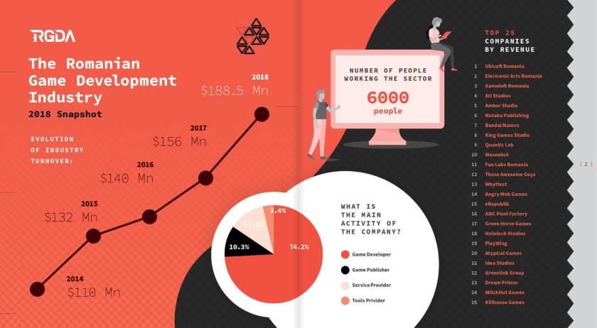 Cifra de afaceri a industriei dezvoltatoare de jocuri video locale a ajuns în 2018 la 188,5 milioane de dolari, înregistrând o creștere de 19,2% față de 2017. Datele sunt preluate din The State of the Romanian Game Developers Industry, un raport al industriei realizat de RGDA (Asociația dezvoltatorilor de jocuri video din România).